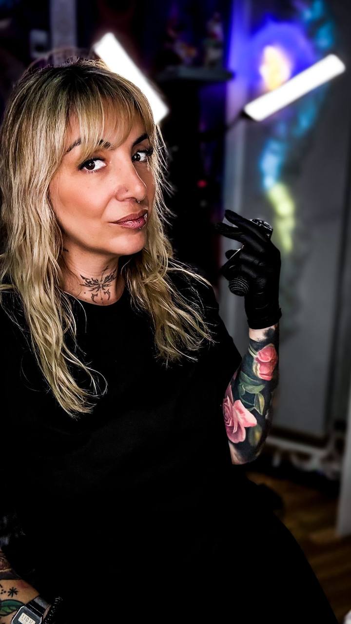 Fast-forward a couple of decades (and several plot twists), and my amazing husband — who’s also a tattoo artist — saw my drawings and told me, “You should tattoo. You’d be great at it.” Turns out, he was absolutely right. A year and a half ago, I picked up a machine for the first time… and never looked back.
